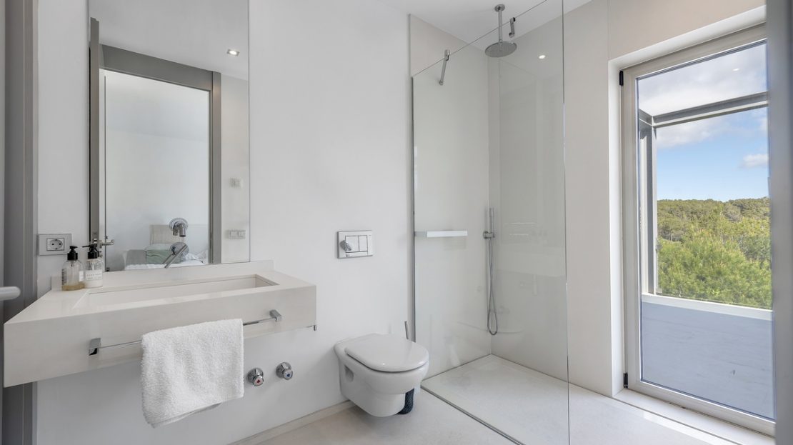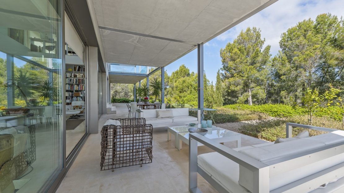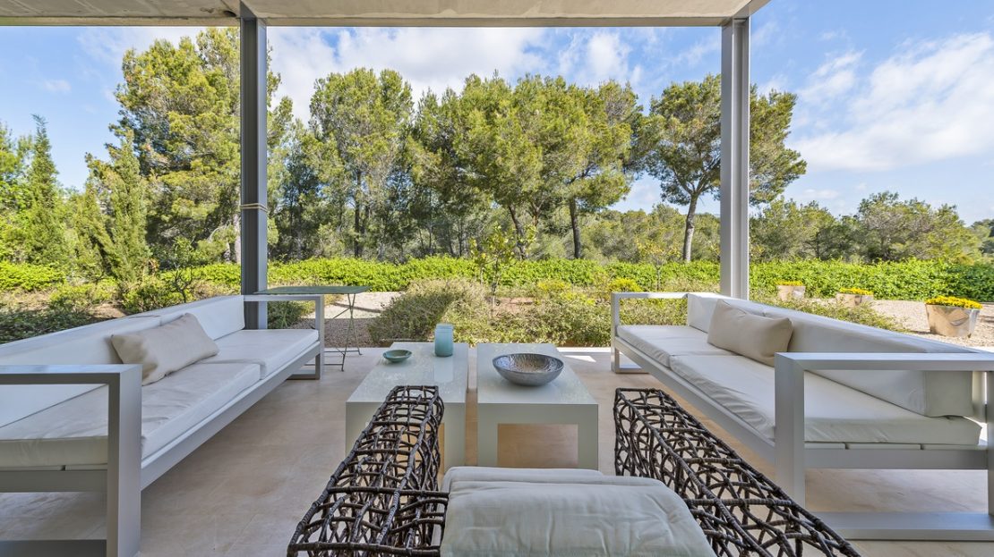 Outdoors, a spectacular infinity pool blends seamlessly with the Mediterranean garden, creating an ideal setting for relaxation and leisure. Several covered and open terraces, a chill-out area, and a barbecue area invite you to enjoy the Mallorcan climate all year round. The property borders a pine forest with direct access to the nearby Cala Bella Dona and also includes a spacious garage.
